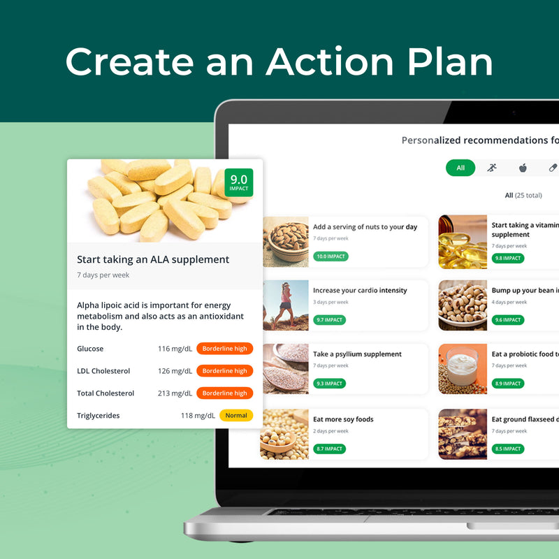 The health habits you implement drive change to your scores and blood biomarkers. Retest to further refine your health plan.